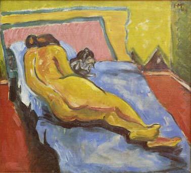 Abonnez-vous dès 1 €Max Pechstein, « Liegender weiblicher Akt mit Katze » (Nue allongée avec chat)