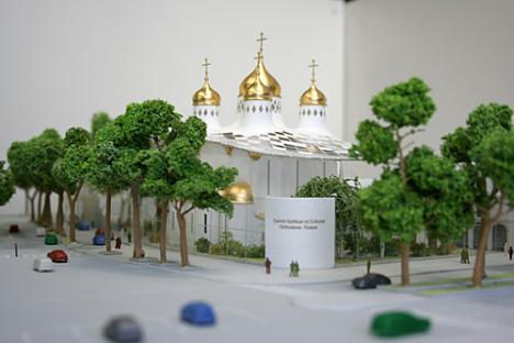 Abonnez-vous dès 1 €Maquette du projet initial, par Manuel Yanowsky, de l'église orthodoxe russe et du centre culturel - © photo ABTB
