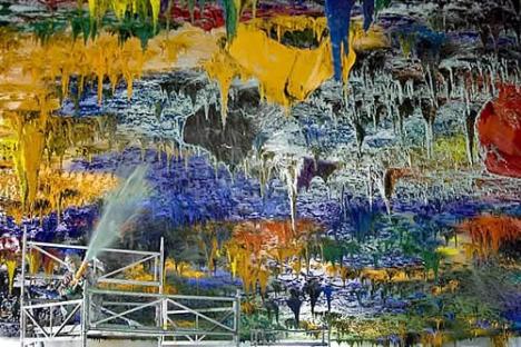 Défiant les lois de la pesanteur, Barceló a dans un premier temps fabriqué les stalactites à l’aide d’une résine spécialement conçue pour l’œuvre. Une centaine de pigments naturels différents ont ensuite été appliqués, avant de recouvrir cette fresque monumentale de milliers de kilos de peinture. Une machine-monstre pulvérisant près de 3000 litres à la minute (celle ayant servie à la réalisation du tunnel du Mont-Blanc et sur des plate-formes pétrolières) a été utilisée. Le bruit infernal de cet engin, qui sema la panique au sein de la sécurité de l’ONU, obligea l’artiste à travailler la nuit.