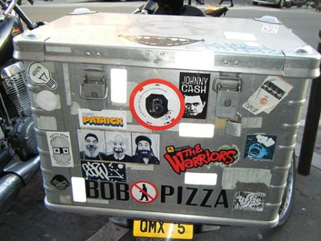 Abonnez-vous dès 1 €Coffre de mobylette. Différents artistes, dont JR avec un extrait de la série Face2Face (Face2Face, Holy Tryptich. 2006) - Photo Mini.fb - 2008 - Source Wikipedia