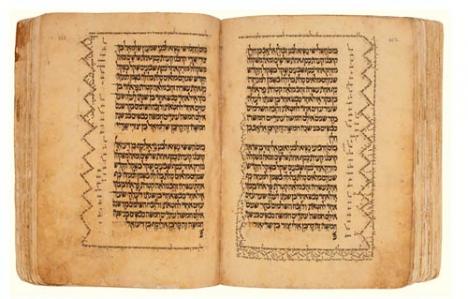 Bible hébraïque : Pentateuque avec Masorah et Masorétique et Introduction grammaticale. Scribe: Benayah ben Sa'adyah ben Zacharie, Yémen, 1470 - Vente Sotheby's's New York du 22 décembre 2015 - Estimation 200 / 300 M$ - Vendu à 334 000 $ (304,642 €) - Photo Sotheby's
