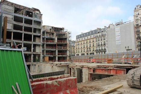 En attendant, la démolition de l’îlot placé entre la rue de Rivoli, la rue de l’Arbre Sec, la rue de la Monnaie et la rue Baillet se poursuit. Après la démolition en surface d’une large part des bâtiments du XVII, XVIIIe et XIXe siècle- c’est au tour des sous-sols –creusés sur trois niveaux- de mobiliser les pelleteuses.