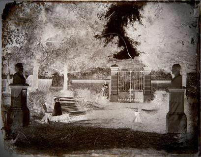 Abonnez-vous dès 1 €CLAUDE GONDRAN (1823-1913) - Bustes de Nicéphore Niepce et de Louis Jacques Mandé Daguerre, Aix-en-Provence, c.1860 Négatif sur verre au collodion. 20.8 x 26.8 cm. Le photographe Gondran, qui était également sculpteur, a voulu rendre hommage aux deux inventeurs de la photographie en créant ces deux bustes en fonte pour les installer dans le jardin de sa maison du Cours des Arts et Métiers à Aix-en-Provence - Estimation : 1 200 / 1 500 € - Vente Leclere du 12 octobre 2013 - source SVV Leclere