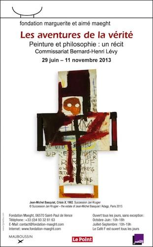 L’exposition « Les Aventures de la vérité. Peinture et philosophie : un récit » organisée à la Fondation Maeght de Saint-Paul de Vence par Bernard-Henry Lévi, a fermé ses portes le 11 novembre 2013 en rejoignant le palmarès des meilleures fréquentations de la fondation : 125 000 visiteurs.