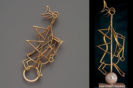 Abonnez-vous dès 1 €A gauche : Broche Hermès en or de 9,8 cm de hauteur, conçue en 1962 d’après une gouache de Georges Braque (décédé en 1963) et créée par Heger de Löwenfeld (décédé en 2000) dans une édition de huit exemplaires. © Lempert