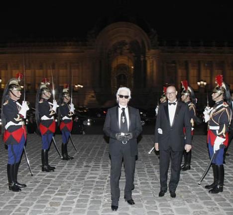 Abonnez-vous dès 1 €Christian Deydier et Karl Lagerfeld entourés de la Garde Républicaine lors de la Biennale des antiquaires en 2012 © Photo SNA