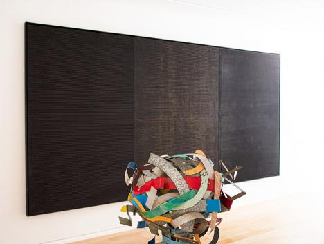 Au centre, une petite sculpture de Dennis Oppenheim (Untitled, 1983), sphère échevelée et colorée : « Daniel Templon l’a donnée à mon grand-père lorsque celui-ci avait son fils comme élève », signale Thomas Benhamou. Le jeune galeriste ne manque pas d’anecdotes. Il est en effet familier de chacune des œuvres réunies dans l’exposition : elles occupaient, du vivant de leur propriétaire, le rez-de-chaussée de son appartement du boulevard de Grenelle. Critique d’art, poète, romancier…, Maurice Benhamou s’est éteint en décembre dernier à l’âge de 90 ans. Thomas Benhamou, son petit-fils, s’était associé à lui en janvier 2019 pour ouvrir cette galerie, après s’être un temps cherché dans la finance et dans le droit. Ce lieu parle autant de la passion du grand-père pour un « art minimal sensible » que de la transmission de ce goût. En reprenant le titre de son dernier roman, très autobiographique (1), cette « Trace du vent » veut offrir une illustration concise et intime de la collection qu’il constitua au cours de sa vie, essentiellement à partir de dons que lui firent ses amis artistes.