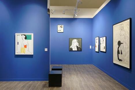 Plus loin le Salon d'honneur porte bien son nom puisque les galeries y disposent de plus vastes espaces. Ainsi les Parisiens Balice et Hertling font étalage des tableaux de résine de Neil Beloufa et de sculptures de Morgan Courtois, tout en exposant une toile de Simone Fattal à 21 000 euros. Sur l'impressionnant stand des Berlinois de Peres Projects, la toile Meet M. Romance de Mark Flood, dénonçant le machisme ambiant, démontre la capacité des artistes à aborder sans délai les sujets d'actualité (et celle de la Fiac à les relayer). Puis les espaces se resserrent et on se bouscule sur les coursives qui surplombent l'aile sud du Grand Palais. Ce sont les accrochages les plus épurés qui attirent l'œil. Ainsi chez Martine Aboucaya fonctionne à merveille le dialogue conceptuel et minimal entre Peter Downsbrough et le duo Detanico/Lain, dont la galeriste vendait dès la première heure une œuvre sur feuilles de papier à 5 500 euros. Même volonté nette de ne pas brouiller la rétine pour la galerie new-yorkaise Queer Thoughts, avec les pièces radicales de l'artiste afro-américaine Diamond Stingily (notamment ces tresses noires démesurées pendues au mur), présentée pour la première fois seule hors des Etats-Unis. Une première fois également pour la galerie Instituto de Visión de Bogotá, qui comme sa compatriote Casas Riegner profite des événements autour de l'année de la Colombie en France, et présente un beau solo show du jeune artiste Felipe Arturo autour du personnage de Huerequeque dans le film Fitzcarraldo de Werner Herzog.