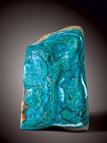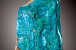 Provenant de mines de cuivre américaines, européennes (France, Angleterre), africaines ou d’Israël, la chrysocolle aux reflets bleu-vert n’est pas une gemme rare, même si les pièces de grande taille sont moins courantes. Jouant sur le côté décoratif, la maison de ventes voulait attirer l’attention de ses clients (traditionnellement des amateurs d’art) sur ce qu’elle décrit dans son catalogue comme une « véritable œuvre d’art naturelle au sens où l’entendaient les surréalistes » et une « véritable pièce de cabinet de curiosités pour de grands amateurs ». « Cette grande pièce, avec son éclat bleu-vert vitreux, captive l’assistance avec ses touches de quartz blanc et ses contrastes créés entre la malachite verte et le bleu azuréen de l’azurite. Toutes ces nuances retiennent irrésistiblement le regard comme le ferait une composition d’art moderne représentant les flots dansants d’une mer aux vagues mousseuses », peut-on encore lire. Pas étonnant que ce beau spécimen ait atteint un prix « délirant », selon les minéralogistes.