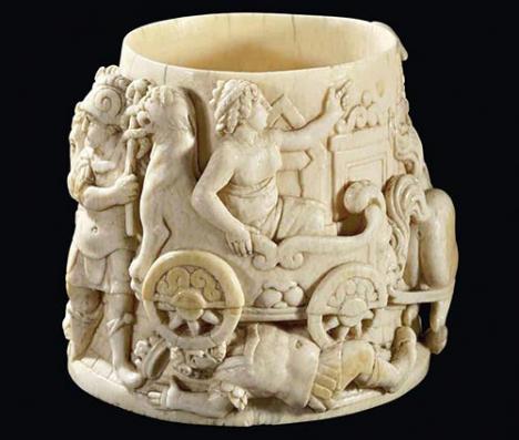 Abonnez-vous dès 1 €Cylindre en ivoire sculpté, Allemagne, XVIIe siècle, 10,6 x 12,7 cm, vendu le 7 novembre 2012, Christie's, Paris. Ce type d'objet ne peut plus être vendu en France, sauf dérogation, depuis l'arêté du 16 août 2016 © photo Christie's Images