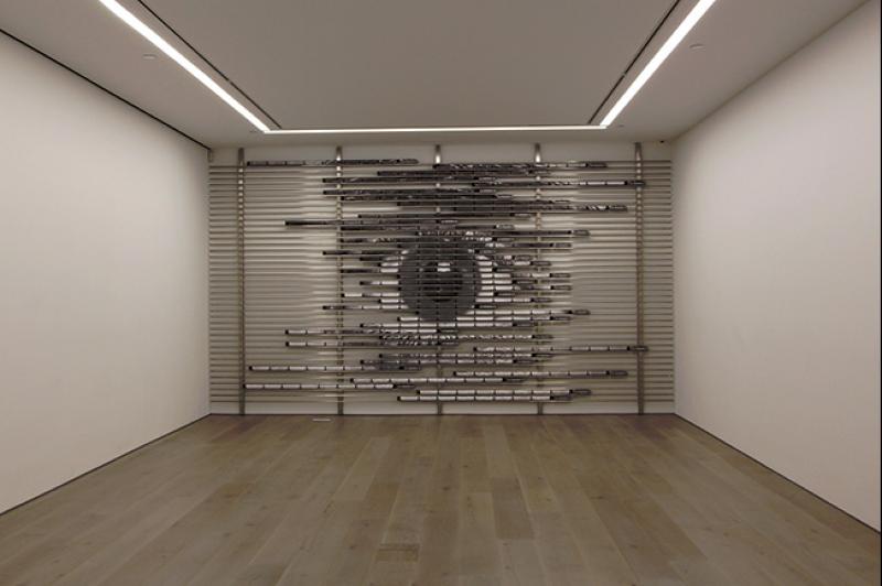 Vous avez également réalisé deux immenses installations à l’extérieur de la galerie : une le long de la façade et un œil sur le sol du rooftop de l’immeuble, que l’on ne peut voir que du ciel. Comment négociez-vous avec Emmanuel Perrotin pour installer ces œuvres qui ne sont pas commercialisables ?