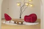 Parallèlement, l’exposition met en lumière quelques créations plus confidentielles, datées de ses débuts dans les années 1930, comme la Paire de fauteuils bas (vers 1937) et la Paire de chauffeuses (1936) réalisées quand il travaille encore chez Pierre Gouffé, l’un des plus grands fabricants de mobilier de style du faubourg Saint-Antoine. « C’est au Salon des artistes décorateurs de 1939 que Jean Royère développe son propre style, avec la présentation de modèles qui deviendront par la suite iconiques comme le Lampadaire Champignon, l’Applique Bouquet, la Chaise Trèfle ou le Fauteuil Éléphanteau », rappelle le marchand. Royère développe ainsi un langage formel qui s’inspire du règne animal ou végétal, réinventé dans un environnement de couleurs ludiques et acidulées.