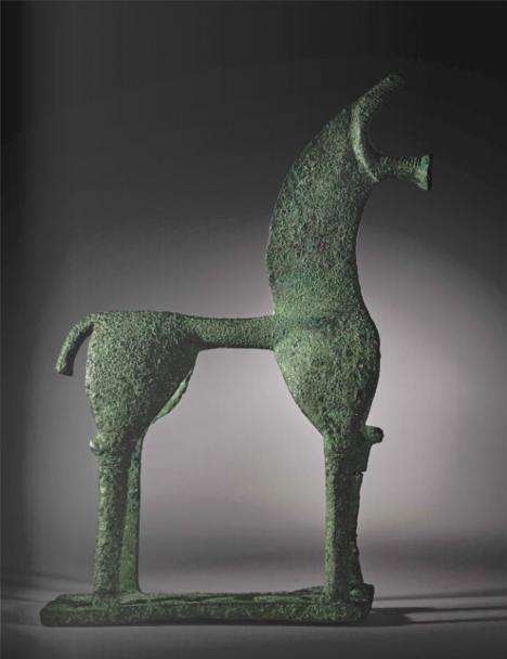 Au centre de cette bataille se dresse un petit cheval aux lignes pures du 8e siècle avant J.C., de style corinthien selon Sotheby's, ou issu d'ateliers de Thessalie, dans le centre de la Grèce, selon le ministère grec de la Culture. Cette pièce de 14 cm de haut devait être mise aux enchères le 14 mai à New York pour le compte de la famille Barnet par Sotheby's, illustrant même la page de garde du catalogue de la vente. Estimée par Sotheby's dans une fourchette entre 127.500 et 212.000 euros, la statuette a été retirée au dernier moment suite à une lettre du ministère grec du 11 mai, dont l'AFP a obtenu copie, demandant le gel immédiat de toute transaction et appelant Sotheby's à "coopérer" pour son rapatriement.