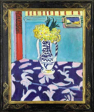 Légende photo : "Les coucous, tapis bleu et rose" (1911) - Henri Matisse - 81 x 65.5 cm - Tableau estimé entre 12 et 18 millions d'euros et adjugé à 35.905.0000 euros (frais compris) - © Photo Christie's