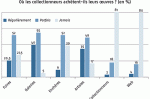 Quels résultats saillants ressortent de ces deux séries d’enquêtes ? D’abord, les collectionneurs relèvent de catégories socioprofessionnelles favorisées. Ils sont très diplômés (les trois quarts ont un diplôme de niveau supérieur ou égal à bac 4) ; ils appartiennent à la catégorie des professions supérieures (45 % sont chefs d’entreprise ou exercent une profession libérale, 42 % sont cadres) ; ils sont plutôt âgés (les deux tiers ont plus de 50 ans), et presque la moitié d’entre eux résident en Île-de-France (47 %). Ces résultats sont sans surprise. Cette population est selon toute évidence un sous-ensemble de celle qui déclare fréquenter régulièrement galeries et musées et pour laquelle l’enquête sur les « Pratiques culturelles des Français » avait déjà mis en évidence une surreprésentation de diplômés et de citadins. La variable financière vient s’ajouter ici.