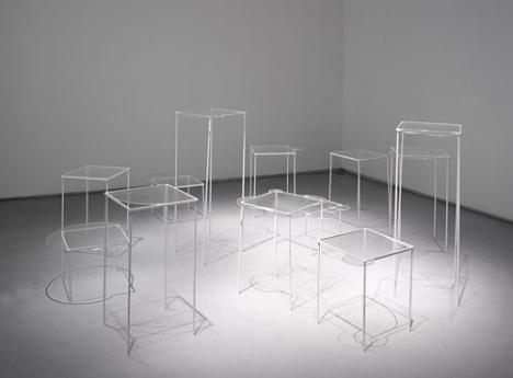 Abonnez-vous dès 1 €Nendo, tables Overflow et Innerblow, 2011, vue de l'exposition « Static bubbles » à la Carpenters Workshop Gallery, Paris. © Carpenters Workshop Gallery.