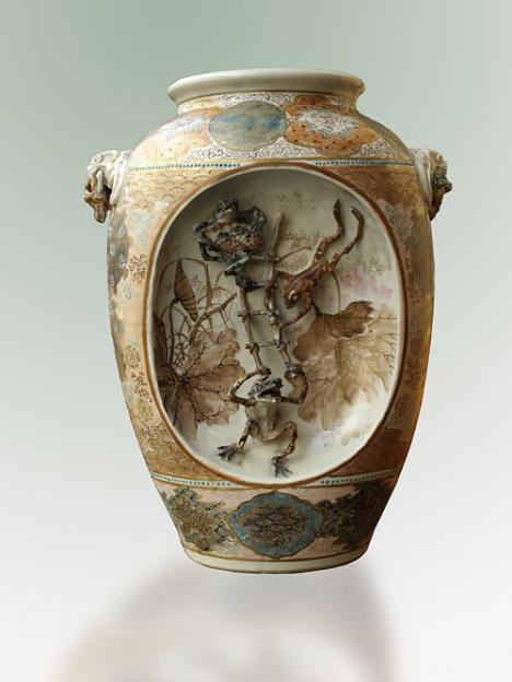 Abonnez-vous dès 1 €Miyagawa (Makuzu) Kozan, Vase à décor de grenouilles, ère Meiji, céramique, technique Satsuma. Courtesy galerie Cristina Ortega, Paris.