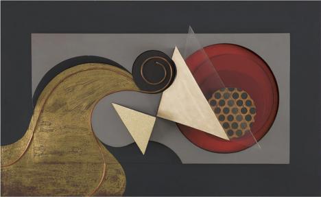 En 1913-1914, une première tentative d’expression par le relief surgit avec Picasso, Tatline ou encore Rodtchenko. Ceux-ci cherchent une nouvelle voie, expérimentent de nouveaux matériaux, avec la volonté de sortir du cadre et de redéfinir l’espace de l’œuvre et ses fonctions. Puis Herbin se lance. En 1918-1919, il commence à découper ses formes, comme dans le triptyque Composition 1, Composition 2, Composition 3, huile sur toile de 1919, ou Composition, 1921, une fresque sur mortier. En 1921, il expose ses reliefs – inspirés d’une forme de cubisme abstrait – à la galerie L’Effort moderne, fondée par Léonce Rosenberg, une exposition qui sera laminée par la critique. Rosenberg lui demande même de repasser à la figuration, ce qu’il fait de 1922 à 1926, entre art naïf et purisme. Mais en 1926 il annonce à Rosenberg qu’il se consacre entièrement à l’abstraction. En 1930, il préside tous les groupes abstraits géométriques, Cercle et Carré, De Stijl ou Art concret, qui se réunissent sous la bannière d’Abstraction-Création. Béothy, sculpteur franco-hongrois, est également très impliqué dans ce mouvement et Domela, un artiste néerlandais qui vient de De Stijl, rejoint l’aventure. À partir de 1937, Domela utilise des matériaux tels que le plexiglas, les cordages, le laiton, le bois, comme l’illustre le Relief. Construction en brun et bleu no 13B, daté de cette année-là. Grâce à Abstraction-Création, il se libère du dogmatisme de Mondrian. Et le relief va devenir son principal mode d’expression, en le faisant l’un des maîtres incontestés du genre. « Il y a une vraie proximité entre les œuvres de Béothy et de Domela à la même époque, notamment dans l’utilisation de matériaux divers, de bois précieux… », note Benoît Sapiro.