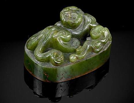 La vente Art d’Asie d’Artcurial a pulvérisée son estimation basse (850 000 euros, hors frais) puisqu’elle a totalisé 3,4 millions d’euros frais compris. Au cœur de cette vente, le cachet impérial chinois, en jade vert épinard sculpté surmonté par un chilong et son petit, de la dynastie Qing, époque Qianlong (1736-1795).