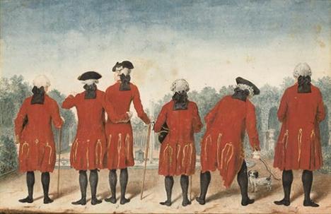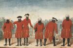 Abonnez-vous dès 1 €Louis Carrogis dit Carmontelle, Les gentilshommes du duc d’Orléans dans l’habit de Saint-Cloud, sanguine, pierre noire, aquarelle et gouache rehaussées de craie blanche, 26,3 x 40 cm, vente des 29 et 30 septembre, Sotheby's, Paris. © Sotheby’s/Art digital studio.