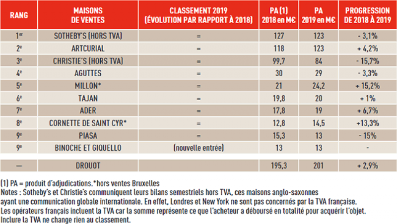 Tandis que les dix premières maisons de ventes en France enregistrent une baisse de 3 %, Sotheby’s et Artcurial sont au coude-à-coude pour occuper la première place.