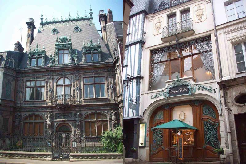 Les visites ont commencé le 26 juillet pour découvrir les 290 m² de ce joyau du patrimoine architectural rouennais. Flanquée d’atlantes et de cariatides en bois sculpté, la maison est garnie de balustrades en fer forgé et d’éléments en cuivre repoussé. Véritable démonstration d’artisanat, la façade a été conçue en 1890 par Ferdinand Marrou, grand ferronnier d’art rouennais et propriétaire de la maison, épaulé par l’architecte Émile Janet.