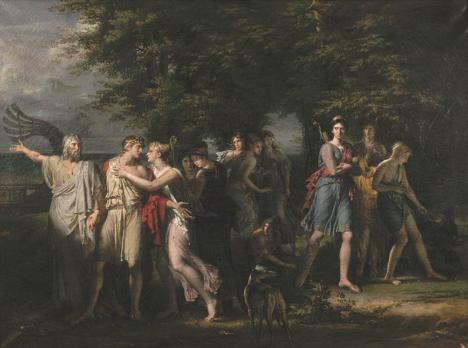 Le tableau "Le départ de Télémaque" était connu, car une gravure le représentant avait été exposée lors de la monographie de 2008. L'oeuvre, de 154 cm sur 203 cm, "avait reçu des éloges de la critique et du public lors de sa présentation au Salon" de Paris, selon la maison de vente Ivoire. Son sujet est tiré du roman d'apprentissage de Fénelon publié en 1699, "Les Aventures de Télémaque", réimprimé tout au long du XVIIIe siècle, selon la même source.