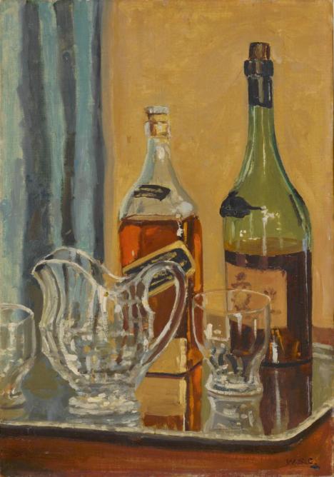 La nature morte représente une bouteille de Johnnie Walker Black Label, boisson dont il faisait une consommation effrénée, ainsi qu'une bouteille d'eau-de-vie, un pichet et deux verres. Elle avait été mise aux enchères avec une estimation haute de 250 000 livres sterling (277 000 euros environ).