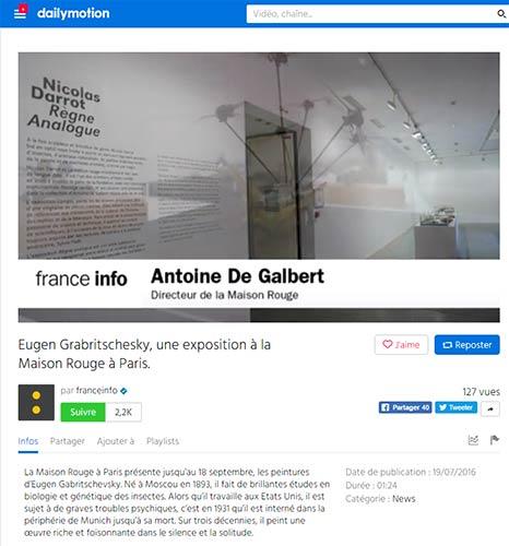 Abonnez-vous dès 1 €Impression écran de l'émission Visites virtuelles sur l'exposition d'Eugen Grabritschesky, à la Maison Rouge à Paris - Source franceinfo