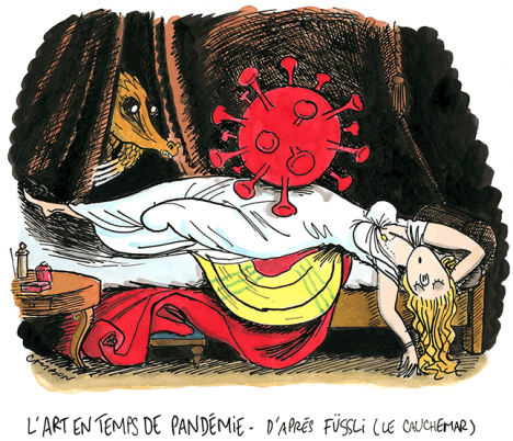 Notre dessinateur Michel Cambon continue de mettre à l’épreuve du virus, avec son humour habituel, tableaux et sculptures les plus connus.