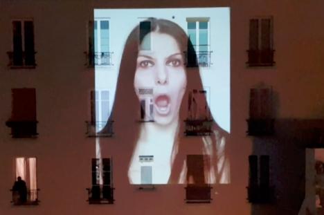 C’est là, et là seulement, que les artistes ont pu se faire entendre d’une société qui pouvait, en effet, les considérer comme pas vraiment « indispensables ». Un artiste est le plus mal placé pour s’auto-décréter indispensable. Seule la société – dont il fait partie – en décide. Dans le Grand Confinement de l’« An 02 », une bonne partie des artistes plasticiens se sont découverts « confinés professionnels », au même titre que les écrivains ou les compositeurs et à la différence des interprètes, qu’ils soient musiciens, danseurs ou acteurs. « L’espoir qui luit comme un brin de paille dans l’étable » est donc venu de ces plasticiens du corps, du temps et de l’espace que sont les performeurs – en majorité, m’a-t-il semblé, des performeuses : faut-il y voir une trace du « confinement » des femmes dans l’espace privé pendant des millénaires, encore sensible dans certains pays, les hommes monopolisant l’espace public ? Quoi qu’il en soit, cette catégorie d’artistes-là aura fait preuve d’une grande imagination créatrice pour pousser les murs et pousser son cri, bref pour jouer avec la contrainte. Un exemple parmi cent autres : celui de Romina de Novellis, confinée à Paris avec sa fille, Maddalena, de la fenêtre de laquelle elle projeta, tous les soirs, des images fixes ou des vidéos (d’elle et d’une soixantaine d’autres artistes) sur la façade située en vis-à-vis.