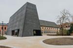 Les bureaux d’architecture Barozzi-Veiga et TAB Architects ont choisi de conserver les bâtiments anciens en leur adjoignant un pavillon contemporain par lequel se fait l’entrée. Les deux nouvelles salles ont été creusées en sous-sol. L’entrée se fait par un café-salle à manger aux murs d’un rouge profond avec un bar tourné vers le public et une longue table rappelant la table commune des Clarisses. Au plafond pend une belle dentelle noire de Élodie Antoine (née en 1978) qui rend hommage aux activités d’accueil et de soin des sœurs.