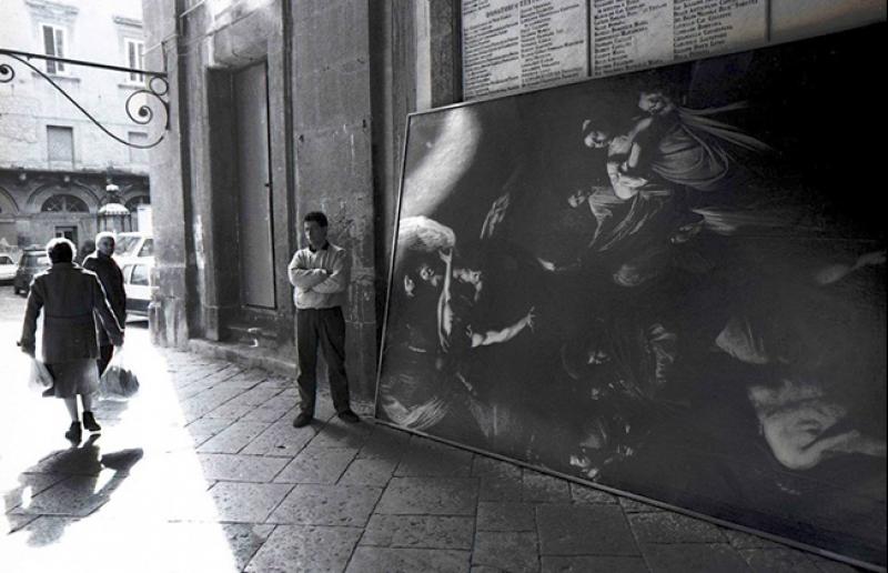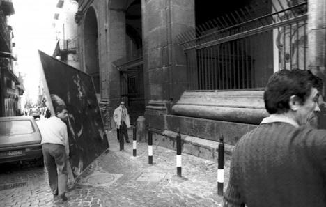 Si le sujet est abordé aujourd’hui avec gravité, le tableau avait été traité avec beaucoup de légèreté à l’époque. C’est ce que documente une série de clichés provenant des archives de Stefano Renna et publiés par le quotidien La Repubblica. Il y a 28 ans, via dei Tribunali à Naples, le photographe tombe nez-à-nez avec le tableau du Caravage.