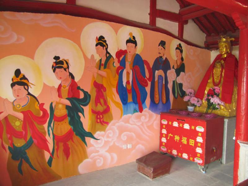 Elles ont été remplacées par des peintures aux couleurs vives et aux lignes audacieuses, mais très éloignées des fresques originelles, tant dans le style que dans les compositions. Dernier exemple d’une préservation du patrimoine controversée en Chine, où de nombreuses structures anciennes ont été détruites au cours des dernières décennies, quitte à parfois être remplacées par des répliques de l'original.