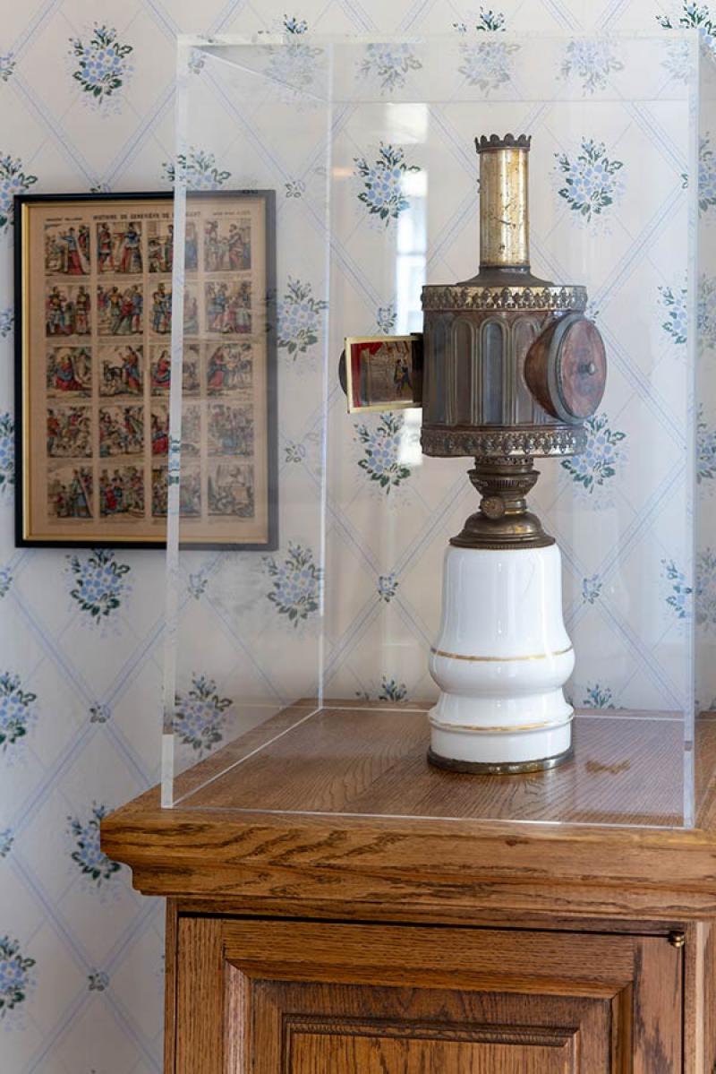 La description des chambres de Combray et de la maison familiale d’Auteuil a inspiré le décor de la chambre du petit Marcel. L’agencement de la pièce et le mobilier recréent cet univers fictionnel en mêlant des pièces authentiques et des objets évocateurs. L’une des nouveautés de la refonte du parcours est l’installation d’une lanterne magique qui projette l’histoire de Geneviève de Brabant. Elle fait écho au passage où le narrateur raconte que la famille utilisait cet appareil pour le distraire.