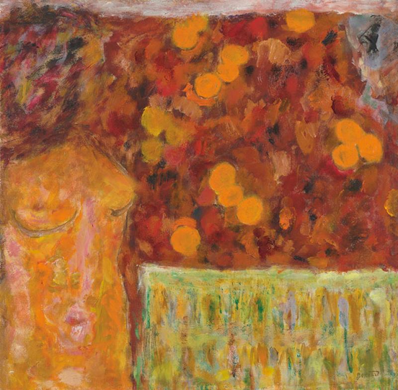 Représentant une jeune femme nue dont la tête se fond dans une nature ocre et orangée, noyée dans un arbre aux fruits ronds, au pied d'un muret de restanque, cette toile n'a été montrée qu'une fois en France, lors d'une exposition au musée Maillol en 1991.