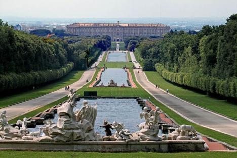 Caserte, Italie. On le surnomme « le Versailles italien ». La Reggia di Caserta, près de Naples, a été construite au milieu du XVIIIe siècle pour rivaliser avec les palais des rois de France et d’Espagne. Charles III, un Bourbon, était également assis à l’époque sur le trône du Royaume des Deux-Siciles. Il confie à l’architecte Luigi Vanvitelli le projet de bâtir ce qui deviendra la plus grande résidence royale au monde à l’issue d’un chantier qui débute en 1752 pour s’achever en 1845. Les chiffres sont impressionnants : un volume de plus de 2 millions de mètres cubes, une surface de plus de 61 000 mètres carrés pour un palais de 1 200 pièces dotées de 1 742 fenêtres, 74 000 mètres carrés de façades, 34 escaliers, mais aussi un parc d’une superficie de 120 hectares qui s’étend sur une longueur de 3 kilomètres. Outre le jardin à l’italienne et celui à l’anglaise agrémentés tous deux de fontaines et ornés de statues mythologiques, on trouve un bassin à poissons et un lac de cygnes qui ont nécessité pour leur approvisionnement en eau un aqueduc parcourant la campagne sur de nombreux kilomètres.
