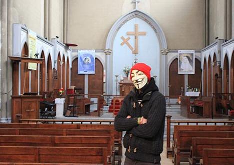 Un "anymous" à l'intérieur de l'église Sainte-Rita, le 12 octobre 2015