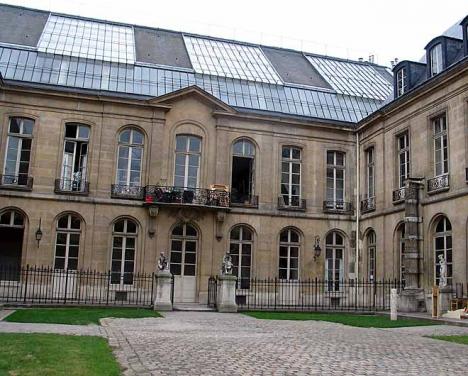 C’est à partir de 1819, année de création de l’école, que l’architecte François Debret – qui cédera rapidement le chantier à son élève Félix Duban – commence la construction de bâtiments spécifiquement dédiés à l’école des beaux-arts, située à l’emplacement de l’ancien couvent des Petits-Augustins. Achevée en 1840, cette cour d’une surface de 800 m², à l’époque à ciel ouvert et au décor entièrement minéral, était destinée à l’étude et à la copie des marbres. Dans les galeries supérieures sont alors installées les copies des Loges du Vatican peintes par Raphaël (1519), exécutées entre 1835 et 1840 par des élèves d’Ingres et de Paul et Raymond Balze à la demande du ministre de l’Intérieur, Adolphe Thiers. Lourdement restaurées au début du XXe siècle, ces toiles marouflées ont été allégées de leurs vernis, les panneaux manquants ayant été repeints, d’après le modèle, par des élèves copistes de l’école. En 1861, Duban prend la décision de couvrir la cour d’une verrière afin de protéger la collection de moulages que l’école vient d’obtenir du Musée du Louvre. Pour accompagner cet ensemble, les parois murales sont alors ornées d’une vive polychromie, inspirée des décors pompéiens, l’architecte étant un fervent défenseur, à l’égal de Charles Garnier, du retour de la couleur dans l’architecture. Ce décor sera achevé par Ernest Coquart (1831-1903) après la mort de Duban, durant la Commune. Installés en 1874, les moulages quitteront l’école après Mai-1968 pour rejoindre les Grandes Écuries de Versailles, où ils sont toujours conservés.