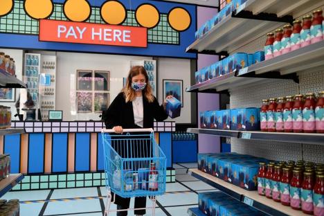 Dans la plupart des musées, il est strictement interdit de toucher et d'acheter les œuvres, mais pas au Design Museum de Londres, qui a transformé sa boutique de souvenirs en « premier supermarché au monde conçu par un artiste » pour rouvrir malgré les restrictions liées au Covid-19.