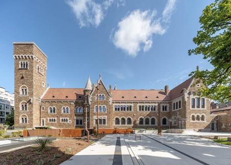Son fondateur Thomas Dobrée (1810-1895) a en effet vu les choses en grand pour héberger sa splendide collection. Le Nantais demande tout simplement à Eugène Viollet-le-Duc, l’« archi star » du moment, de lui dessiner un palais d’inspiration médiévale pour l’abriter. Or le commanditaire est très exigeant et a une idée précise de ce qu’il veut, il retoque ainsi sans complexes les plans du maître, trop néo-gothiques à son goût. Comme on n’est jamais aussi bien servi que par soi-même, Dobrée prend donc son crayon pour tracer la maison de ses rêves. Il pousse le souci du détail jusqu’à imaginer les animaux qui gargouillent sur le toit, avec une prédilection pour les ours, mais aussi le bestiaire plein de fantaisie des chapiteaux coiffant les colonnes du hall d’entrée. Résolument néo-roman, cet immense bâtiment dialogue élégamment avec le manoir de La Touche, ancien logis épiscopal du XVe siècle trônant au cœur de l’îlot qu’il a acquis. Le maître des lieux avait initialement prévu de présenter ses trésors dans ce bâtiment historique. Un projet compromis par l’irrésistible expansion de cette collection fleuve. D’autant que, depuis, l’esprit du musée a considérablement évolué : outre les acquisitions de Dobrée, il est décidé que le lieu accueille également la collection engoncée dans le minuscule Musée archéologique de Nantes. D’emblée, ce lieu aux faux airs de Poudlard se présente comme un véritable patchwork. Un collage architectural, encore accentué par l’érection, dans les années 1970, d’un édifice brutaliste qui complète le paysage ; mais surtout une détonante mosaïque de collections. À l’inauguration, les pièces archéologiques investissent ainsi le rez-de-chaussée tandis que les perles médiévales et bibliophiliques glanées par le fondateur dans les plus prestigieuses ventes publiques illuminent le premier étage.