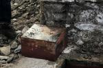 Une première boîte avait été exhumée, puis ouverte avec soin, mais elle ne contenait que trois livres et une enveloppe en tissu avec une photographie, tous endommagés par l'eau, ainsi qu'une pièce de monnaie d'origine inconnue. Cette capsule semble avoir été placée dans le socle par travailleurs ayant participé à l'érection de la statue. L'un des ouvrages était un guide pour les astronomes et les navigateurs datant de 1875. Mais un autre semblait avoir été publié en 1889, soit deux ans après l'enterrement supposé de la capsule, laissant penser qu'un autre réceptacle de ce type pouvait se trouver sous le socle.