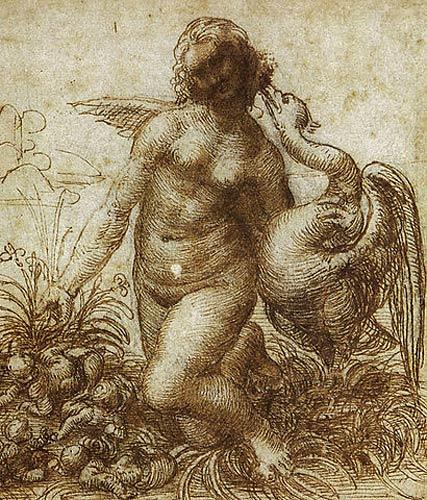 Étude pour une Léda agenouillée au cygne de Léonard de Vinci - source Wikipedia